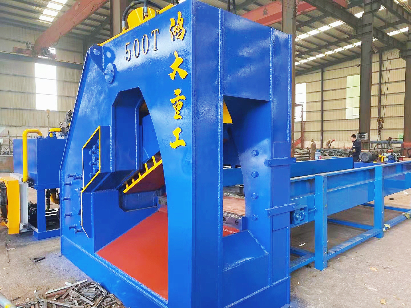 8、废料是从上面加入,由预压缸压缩废料后自动滑落并被剪切缸剪切,废钢虎头剪切机这种设计大大提高了设备的效率和安全性。